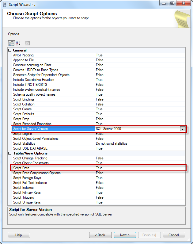 配置相关信息,注意选择数据库的版本并将Script Data设置成True。