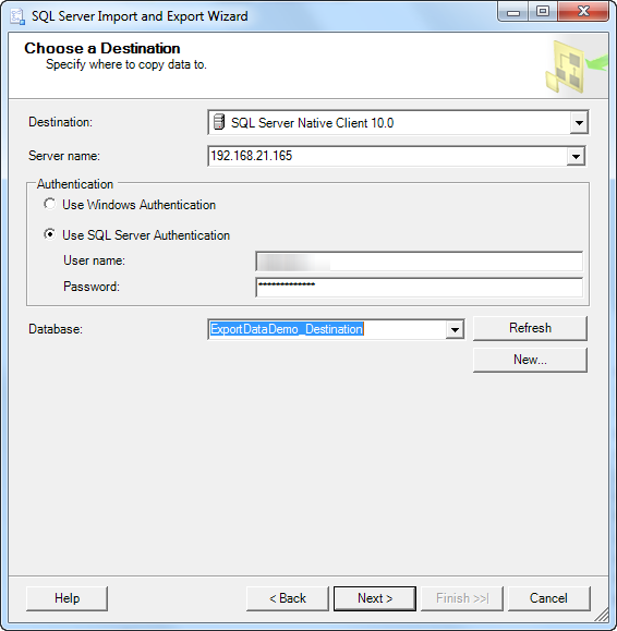 注意导入的时候如果遇到如下的错误 Error 0xc02020f4: Data Flow Task: The column "Tel" cannot be processed because more than one code page (936 and 1252) are specified for it. 是因为两边的数据库的Collation设置不一样造成的,需要设置同样的Collation。