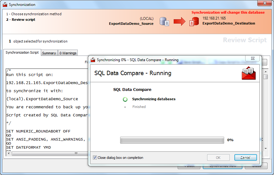 工作中有段时间常常涉及到不同版本的数据库间导出导入数据的问题,索性整理一下,并简单比较下性能,有所遗漏的方法也欢迎讨论、补充。 00.建立测试环境 01.使用SQL Server Import and Export Tool 02.使用Generate Scripts 03.使用BCP 04.使用SqlBulkCopy 05.使用Linked Server进行数据迁移 06.使用RedGate的SQL Data Compare 07.结果对比 可以先看下测试的结果