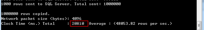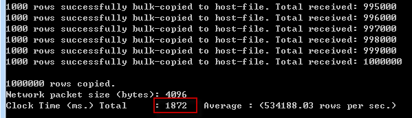 我们可以看到100万的数据导出仅用了1.8秒。 现在我们再使用BCP进行导入。