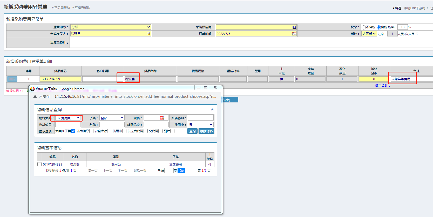 [点晴模切ERP]新增采购发票如果有快递费之类的费用