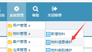 ![]() 操作步骤:系统管理-物料管理-物料信息维护。如下图: