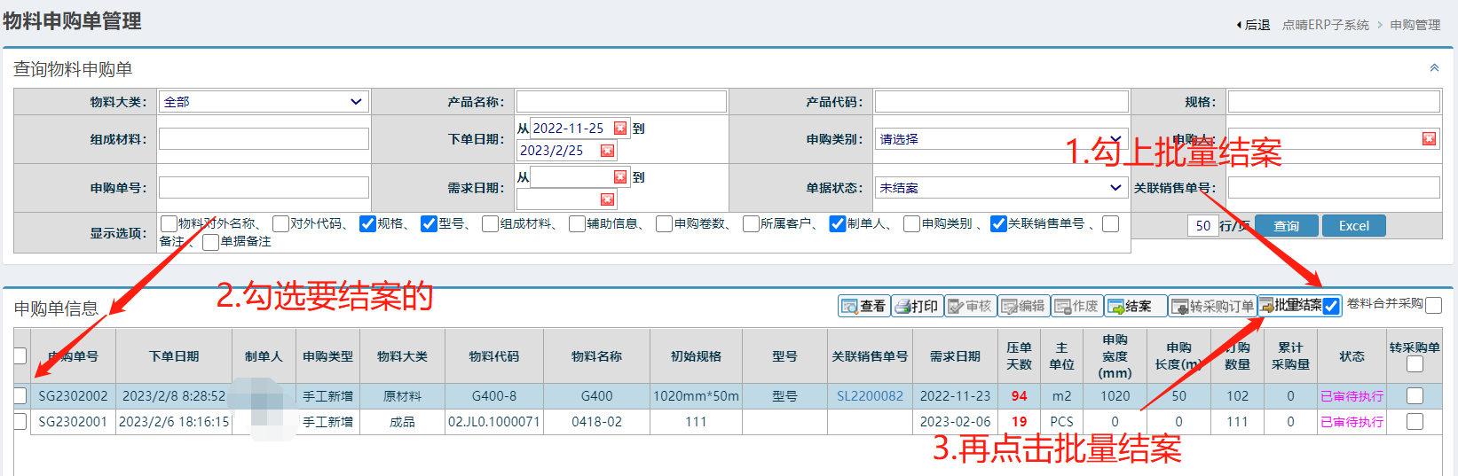 点晴模切ERP-申购单如何批量结案