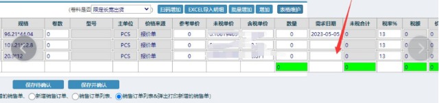 点晴模切ERP-新增销售订单添加明细后的需求日期要一个一个操作,如何批量执行