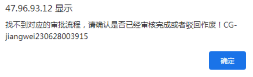 情况描述:审核单据时弹出提示:找不到对应的审批流程,请确认是否已经审核完成或者驳回作废。