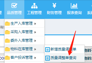 点击选择合格品,下面备注栏上传品检报告,点击提交完成 完成后进入品质管理-物料在库管理-质量调整单查询