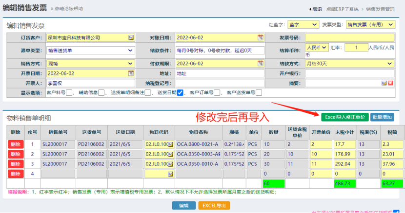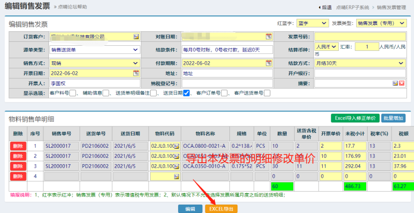 点晴模切ERP-如何批量修改发票单价