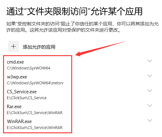 在Windows Defender中设置勒索软件防护将点晴MIS系统加入后就无法访问了,提示网站目录没有操作权限-错误104,如何解决?