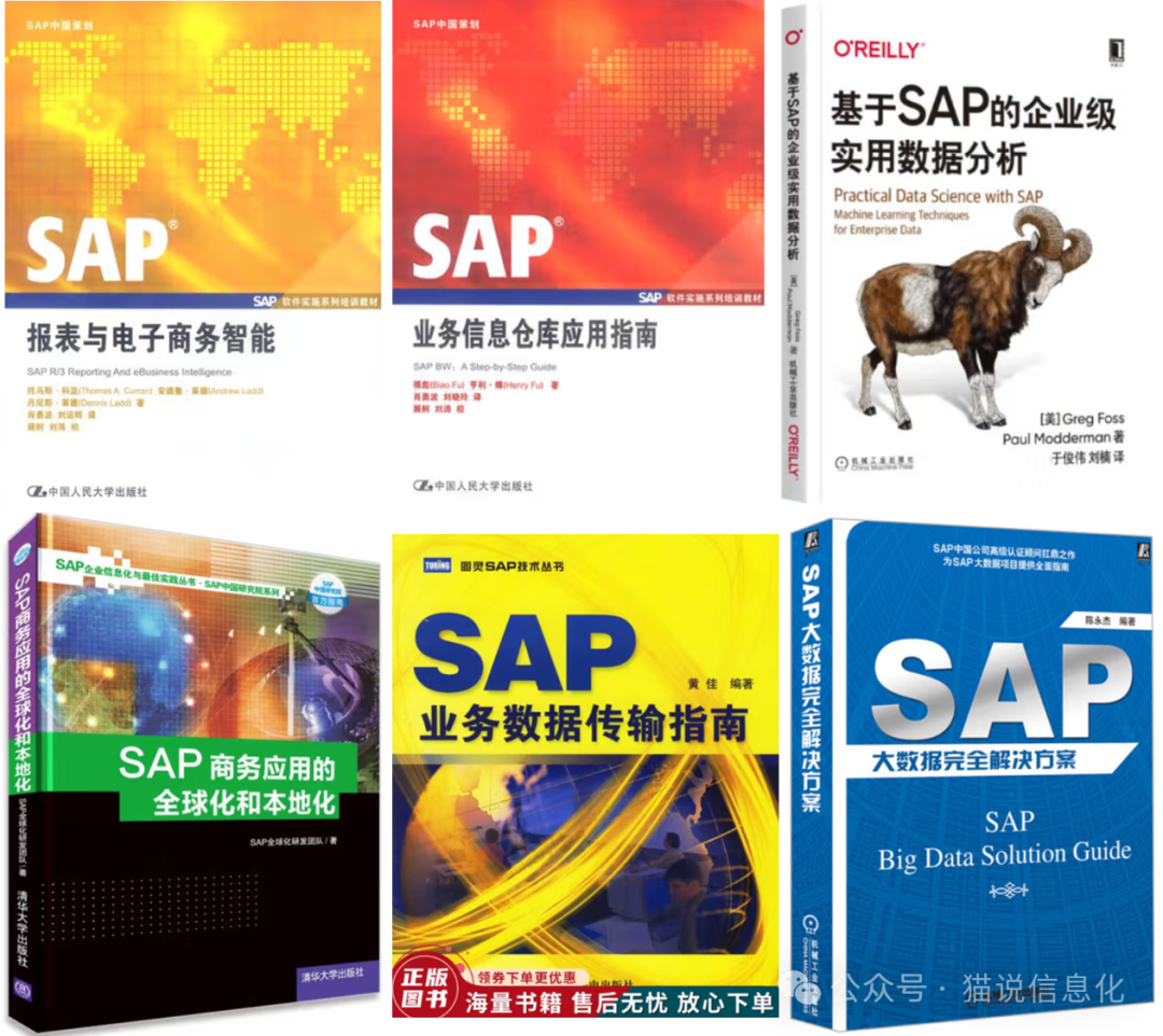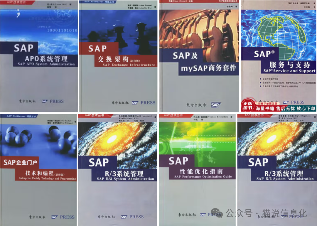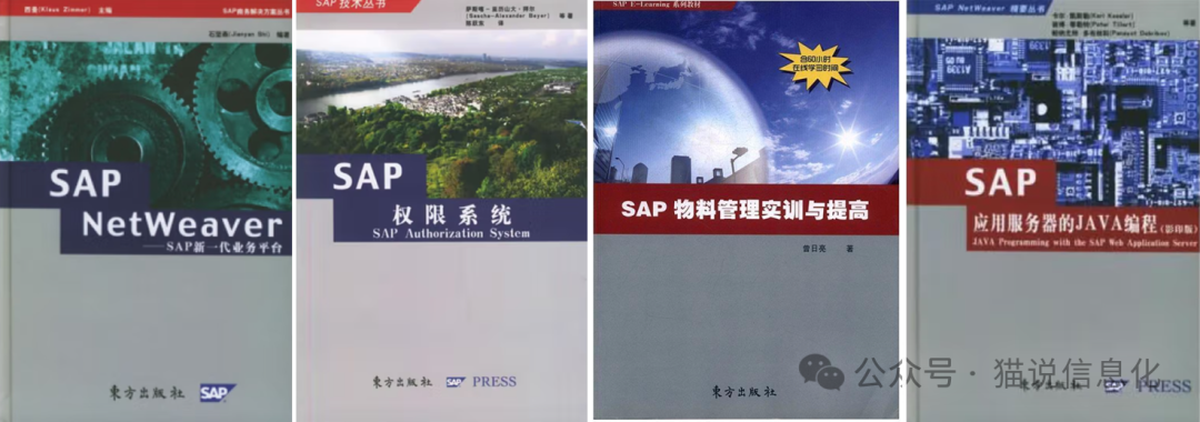 SAP专业书的作者是多元化的,一部分是SAP原厂根据其产品在中国的使用和推广情况,由原厂组织专家编写和翻译一部分专业书;也有很多书的作者是SAP生态中资深的顾问,这些顾问自主写了一部分书;还有就是用户自己也会写一些SAP的书。 例如以下这一系列专业书。