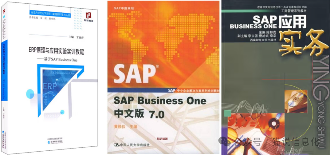 以上这么多SAP的专业书,都围绕着SAP面向大型企业和集团的核心ERP产品(R/3、ECC、S/4)及同级别相关产品。对SAP面向中小企业的产品SAP Business One,也有一些专业书。