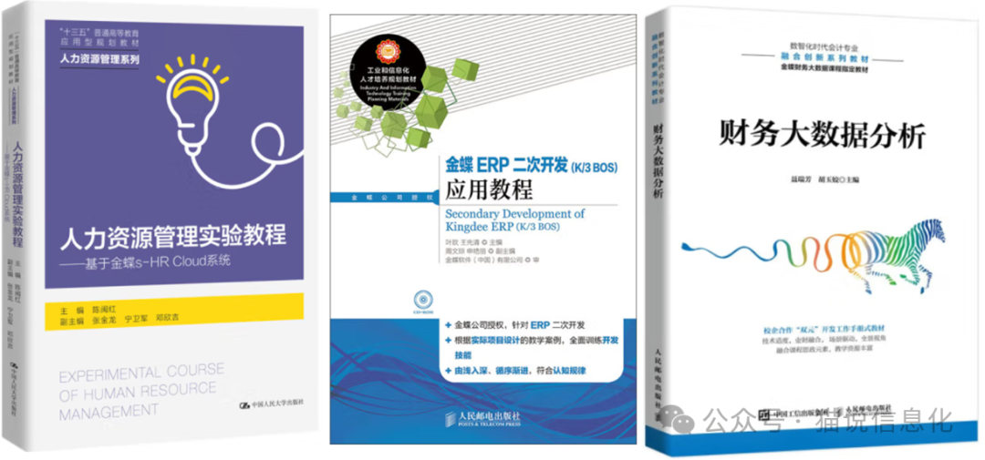 由此也发现,金蝶也一样,写中小型ERP产品的书很多,并且也是教材多,写大型ERP产品的书非常少。 金蝶另外一些书,有一本写人力资源的,一本写K3二次开发的,一本写财务大数据分析的。