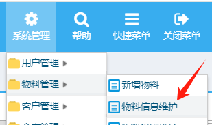 操作步骤:系统管理-物料管理-物料信息维护,如下图所示: