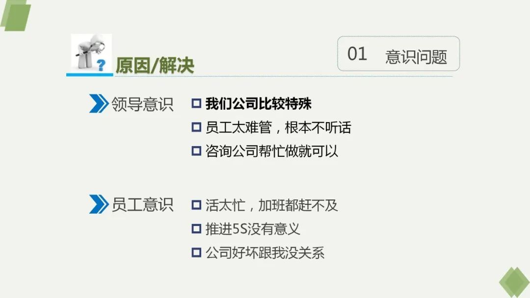 如何让供应商感觉你真的有水平,在总结中“一语中的”直击要害,让供应商不得不服呢?现场观察是持续改善的基础。丰田的大野耐一将现场观察做到了极致,甚至在工厂休息日,他也会带管理人员到现场,让人站在车间安静地观察半个小时,然后指出需要改善之处。唯有如此,才能真正做到改善无止境,做到PDCA循环。企业内部人员往往对很多问题或者视而不见,或者认为无伤大雅,或者认为无法改变。也有很多管理者往往对直观信息熟视无睹,只对数字情有独钟。结果就可能挂一漏万,忽略一些关键线索,不能真正了解企业的真实状况。作为客户,我们应该到供应商的现场,了解其成本构成、生产效率、品质管控。作为供应商,我们应该到客户的现场,了解其生产流程,以便更好地为客户服务。作为同行,如果有机会到其他工厂参观, 也是非常好的学习、对比、参照的机会。企业运营是一个大系统,所有环节息息相关,互相影响。对于生产型企业来说,通过现场的任何细节,均可知微见著。任何大问题的产生,都可以从现场找到根源。即便是在有限的时间里走马观花,只要抓住重点,也能充分掌握工厂运作的关键信息。以下结合宏观大系统以及管理细节两方面来谈谈如何进行现场观察。在现场首先可以直观地看到最真实的员工精神面貌,士气高昂的员工与邋遢、冷漠的员工会形成鲜明对比。与现场工人交谈几句,从工人的面部表情和肢体语言也可以得到重要的第一印象,因为这些直接反映了工人的情绪及对工厂的满意度。我参观过的一家工厂里,大部分车间都播放着欢快的音乐,一眼看过去,工人们劳动热情很高,在这样轻松愉悦的环境中工作,效率相对更高,产品的质量也会让人更有信心。在车间走动可以注意观察是否有忙闲不均的现象,例如机器在自动加工的时候,工人长时间在旁边无所事事,或者是有的工位上的工人在长时间等待物料。存在这种现象说明工厂缺乏精益管理,人员利用率低,闲散的员工也会影响其他人的工作氛围,整体工作效率低,成本必然更高。应该留意车间的光线是否充足,空气流通是否顺畅,现场是否有异味,噪音是否太大,车间是否整洁,因为这些也会直接影响工人的心情,进而影响生产效率和产品质量。很难想象一个现场氛围懒散、低落、冷漠,员工或心怀怨气或无所事事的工厂能够做好产品、创造效益。中国的很多工厂都好大喜功,生产车间越大越好,结果往往利用率很低,设备及工序布局很分散,除了浪费空间外,物料也在工厂中进行着大量无谓的搬运。而发达国家的多数工厂看起来没那么壮观,甚至略显局促,但是空间利用率高,流转效率也很高。运输工具不但占用空间,操作成本高,还会鼓励不必要的物料移动。我在一个客户工厂看到很多电动叉车、手动叉车在忙碌地穿梭,但是其中有大量的无谓搬运。例如同一批零件从A区搬到B区加工完后再搬回A区做后道加工,然后搬到C区处理,最后还要再搬回B区,搬运的浪费简直达到极致。原则上当天使用的生产物料应沿生产线存放,而不是在几个库存区分隔存储,工具和工装摆放应尽量靠近机器。工厂布局应保证产品流动的顺畅性,尽量避免任何隔断。如果在一个工厂中看到物料搬运距离长,搬运路线重复,或者搬运次数多,则说明布局不合理,空间利用不理想,也说明生产线没有做到尽量集结。标准是最佳的状态和统一的执行参照。没有标准就无从执行,就没有改进的着眼点。生产现场应该有的标准很多,包括作业和品质标准,5S与安全标准、操作与维护标准,流程与返工标准、安全库存标准等等。很多工厂现场都有SOP(标准化作业流程),我们可以观察这些标准是否有漏项、能否易于执行、中间是否有断点。检查是否写的、说的、做的一致,质量控制点是否以醒目的标志或颜色加以突出。通过观察同一个工序的不同员工具体操作过程,可以发现其中是否有差异,包括动作的顺序、操作力度、是否有遗漏等方面。有差异说明员工缺乏标准化操作培训,则产品发生变异的可能性大大增加。我在一个供应商工厂参观时,发现不同的工人锁四个螺丝的顺序不同,也没有标准扭力参考,全凭感觉,有的工人会锁两遍,有的工人只锁一遍,难怪会发生螺丝脱落,或者一边锁得太紧导致另一边翘起来的质量投诉。现场观察应着重留意车间对于不良品的处理方式。好的工厂会将问题暴露出来,而不是将不良品和废品掩盖起来。例如用灯光聚焦废料,或用红色标签将其醒目标出,这样可以立刻知道废料是否在增加,或者生产流程的某段是否正在生产不良品。我在一个工厂的角落看到很多不良品,从上面的灰尘可见堆积了相当长时间,但没有任何标志来说明不良的原因和问题所在。询问现场工人,回答说那些东西都好几个月了,没人清楚是什么问题,也没人处理。询问出现不良品如何处理,回答是有专人返工,也没人去深究出现不良的原因。谁敢和品质管理如此混乱的工厂合作呢?在制品、半成品的可追溯性也可以在现场很容易地看出来。在好的工厂里,每个部件都有一张卡片或一份文件跟随流转,注明来源、经手加工的人员、所使用的设备等信息,在任何工序发现问题均可轻易追溯到源头,也便于改善。现场可以通过工人对于零部件的防护程度,来判断品对品质管理的精细度。我在一家电机厂看到转子随意摆放在水泥地面,没有任何防护