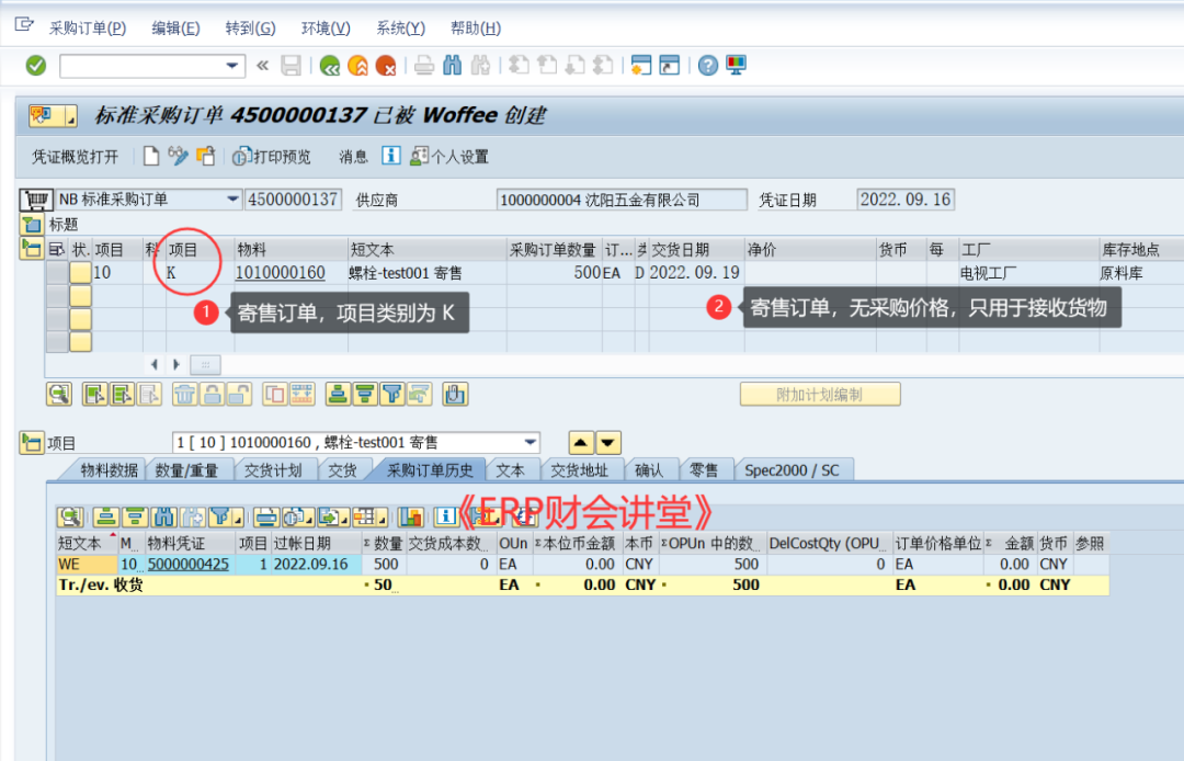 接下来,给大家演示寄售的流程。 第一步,创建寄售采购订单,用于接收供应商货物。