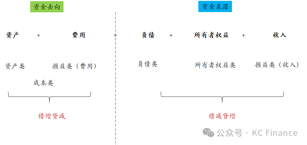 因此我们以企业为中心,资金的来源,如负债和所有者权益,其变动适用于借减贷增;资金的去向,如资产,其变动适用于借增贷减。这样一借一贷,其实反映的是资金的来源和去向两个方面,因此其必然相等,这也是会计恒等式的理论基础。
