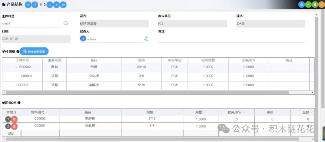 定期更新:产品生命周期中,BOM可能会发生变化,例如零部件的替换、规格的变更等。因此,企业需要定期更新BOM,以反映最新的产品结构和物料信息。