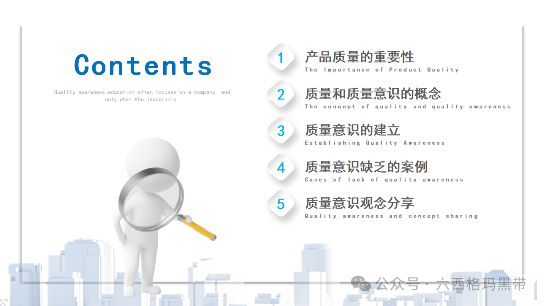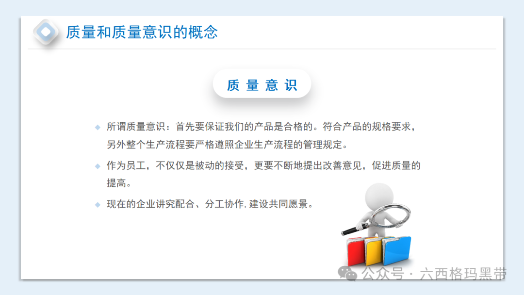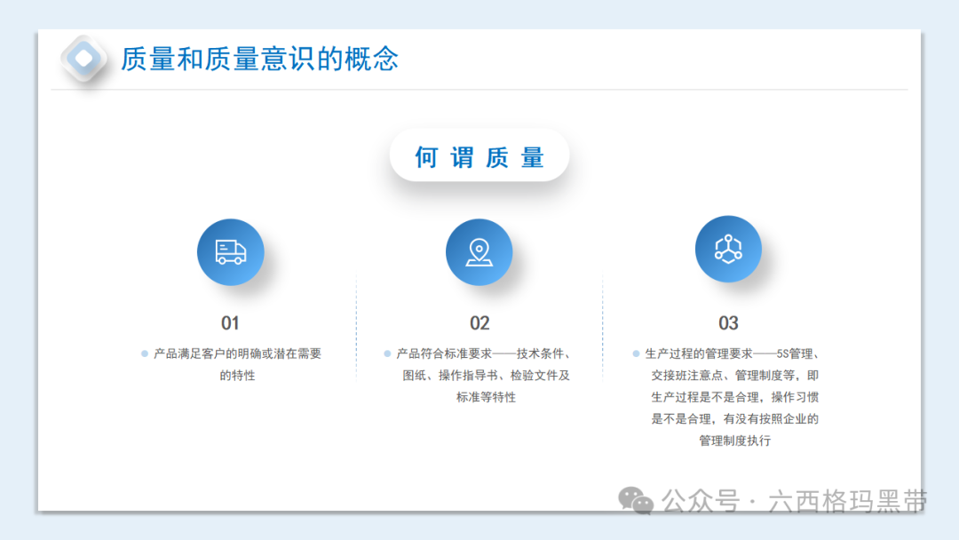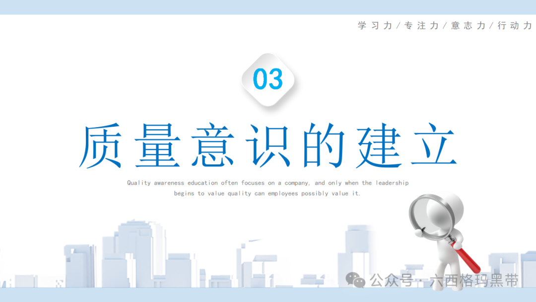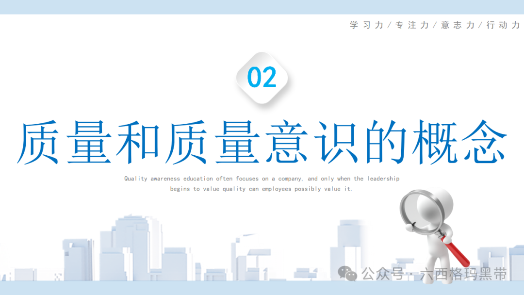 质量意识教育在企业中至关重要,只有当领导层开始重视质量,员工才有可能真正重视起来。那么,什么是质量呢?质量是产品满足客户明确或潜在需要的特性,是产品符合标准要求的特性,也是生产过程管理要求的体现。而质量意识,则是要求我们不仅要保证产品合格,符合规格要求,还要严格遵守企业生产流程的管理规定。作为员工,我们不能仅仅是被动接受,更要积极提出改善意见,促进质量的提高。观念的改变是行动改变的前提,行动的改变又能促使习惯的改变,而习惯的改变最终将影响我们的人生。