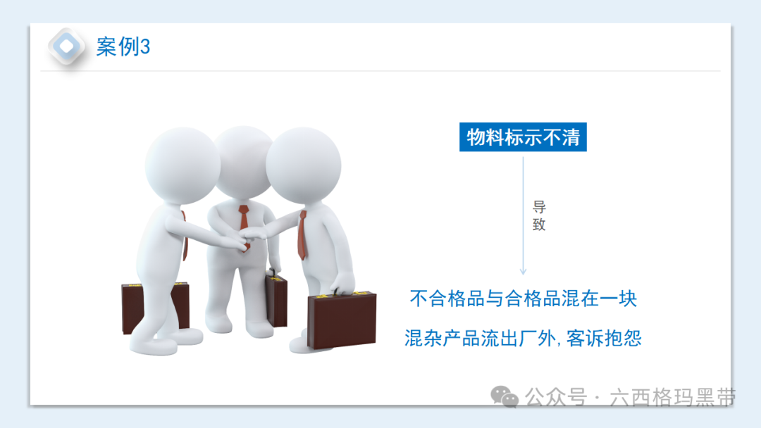 让我们来看一些质量意识缺乏的案例。案例1、案例2、案例3、案例4和案例5,这些案例都反映了我们在工作中可能遇到的一些问题。比如,小小的错误被忽视,最终导致小事变大事;原物料屡屡领错,反映出我们的管理存在漏洞;对工作要求理解不清,盲目操作,等等。这些案例给我们敲响了警钟,我们必须从中吸取教训,避免类似问题的发生。