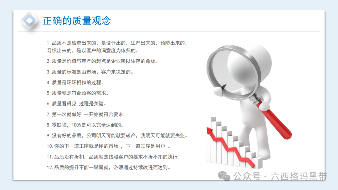 2. 质量是价值与尊严的起点:高质量的产品不仅能够满足客户的需求,还能提升企业的形象和声誉,是企业价值和员工尊严的体现。