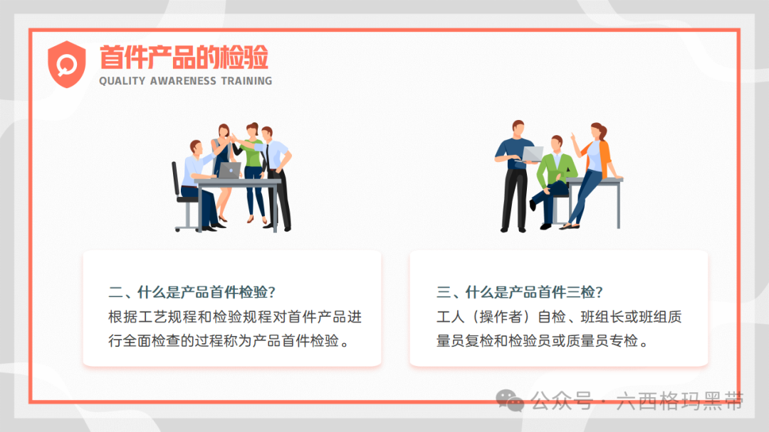 不合格品的处理及产品标识生产过程中发现不合格的处理在生产过程中,一旦发现不合格品,员工应立即停止生产,并对生产过程进行检查和分析,查找原因并采取有效的纠正措施。对于无法改正的不合格品,应及时报废并处理,防止其流入市场或影响下一道工序的生产。同时,不合格品的处理应经过质检人员的确认和审批,确保处理的合理性和合法性。 产品的标识及可追溯性为了确保产品的质量和可追溯性,企业需要对产品进行明确的标识。标识应包括产品的名称、规格、型号、生产日期、批次号等信息,以便于追踪和追溯。同时,企业还需要建立健全的记录制度,对生产过程中的每一个环节进行详细的记录,确保记录的真实性和完整性。记录应包括原材料的使用情况、生产过程的操作情况、产品的检验情况等,以便于在出现问题时能够及时查找原因并采取相应的措施。 此外,企业还应根据产品的不同状态进行标识,如未检、已检合格、已检不合格、已检待处理等。这种标识有助于员工在生产过程中及时识别和处理不同状态的产品,防止混淆和误用。 员工需具有质量意识现场生产员工是产品质量的直接创造者,他们的质量意识直接关系到产品的最终质量。因此,员工必须深刻理解并践行“五个三”的质量管理理念,以确保产品质量的持续提升。 三自一控三自一控指的是自检、自分、自纠以及控制一次自检的正确率。员工在生产过程中,应主动对自己的工作进行自检,确保每一步操作都符合质量标准;同时,要能够自我分辨出合格与不合格的产品,对不合格品进行及时纠正。此外,还要努力提高一次自检的正确率,减少重复检验和误判,提高生产效率。 三检制三检制包括首检、互检和专检。首检是在生产开始时对首批产品进行检验,确保生产过程的稳定性和准确性;互检是在生产过程中,员工之间相互检查对方的产品,形成相互监督、相互帮助的机制;专检则是由专业的质检人员对产品进行最终的检验和确认,确保产品质量的合格性。三检制的实施有助于形成全方位、多层次的质量监控体系。 三工序活动三工序活动强调员工在生产过程中应关注上工序、本工序和下工序的质量情况。通过复查上工序的产品,可以确保接收的原材料或半成品符合质量要求;在本工序中,要严格按照质量标准进行操作,确保生产出的产品合格;同时,还要关注下工序的需求,为下工序提供合格的产品和必要的帮助,形成全面的质量管理链条。 三按三按是指按图纸、按工艺、按标准进行操作。图纸是产品设计的依据,工艺是产品生产的流程,标准是产品质量的衡量尺度。员工在生产过程中,必须严格遵守这三者的要求,确保生产过程的规范性和准确性。 三不放过三不放过是对质量问题的处理原则,即对出现的问题不查清不放过、不处理不放过、不改进不放过。这一原则要求员工对质量问题保持高度的警惕性,一旦发现问题,要立即进行深入的调查和分析,找出问题的根源,并采取有效的措施进行解决和预防,确保问题的彻底解决和不再发生。 首件产品的检验什么是首件产品?首件产品是指每批产品或每次生产开始时的第一件产品。由于首件产品代表了整个生产过程的开始,因此其质量状况对整个生产过程具有重要影响。 什么是产品首件检验?产品首件检验是对首件产品进行全面的检查和验证的过程。通过首件检验,可以确认生产过程是否稳定、准确,以及产品是否符合质量要求。首件检验通常由专业的质检人员或生产负责人进行,检验内容包括外观、尺寸、性能等多个方面。 什么是产品首件三检?产品首件三检是指在首件检验过程中,进行三次不同层次的检验。第一次检验由操作者自检,确保产品符合基本的质量要求;第二次检验由班组长或质检员进行互检,对产品的关键特性进行再次确认;第三次检验由专职质检员进行专检,对产品进行全面的质量评估。通过三次检验,可以确保首件产品的质量符合标准和要求。 什么是产品?产品是指经过生产、加工、制造等过程而得到的具有特定形状、性能、用途和价值的物品。在质量管理中,产品不仅指最终的成品,还包括生产过程中的半成品、原材料等。 错误认识纠正品质不是检验出来的,而是生产出来的这一观念强调了生产过程控制的重要性。检验只是对产品质量的验证手段,而真正的质量是在生产过程中形成的。因此,企业必须重视生产过程的每一个环节,确保每个环节都符合质量标准,从而生产出高品质的产品。 小问题不容忽视在生产过程中,一些看似微小的问题可能会逐渐累积并演变成大问题,甚至导致整个生产过程的失控。因此,员工应具备敏锐的观察力和判断力,及时发现并处理小问题,防止其演变成大问题,确保生产过程的稳定性和产品的可靠性。 ISO9000标准及其精神ISO9000标准是国际标准化组织制定的一系列质量管理标准,旨在帮助企业建立和完善质量管理体系,提高产品质量和服务水平。 ISO9000标准的核心要素
