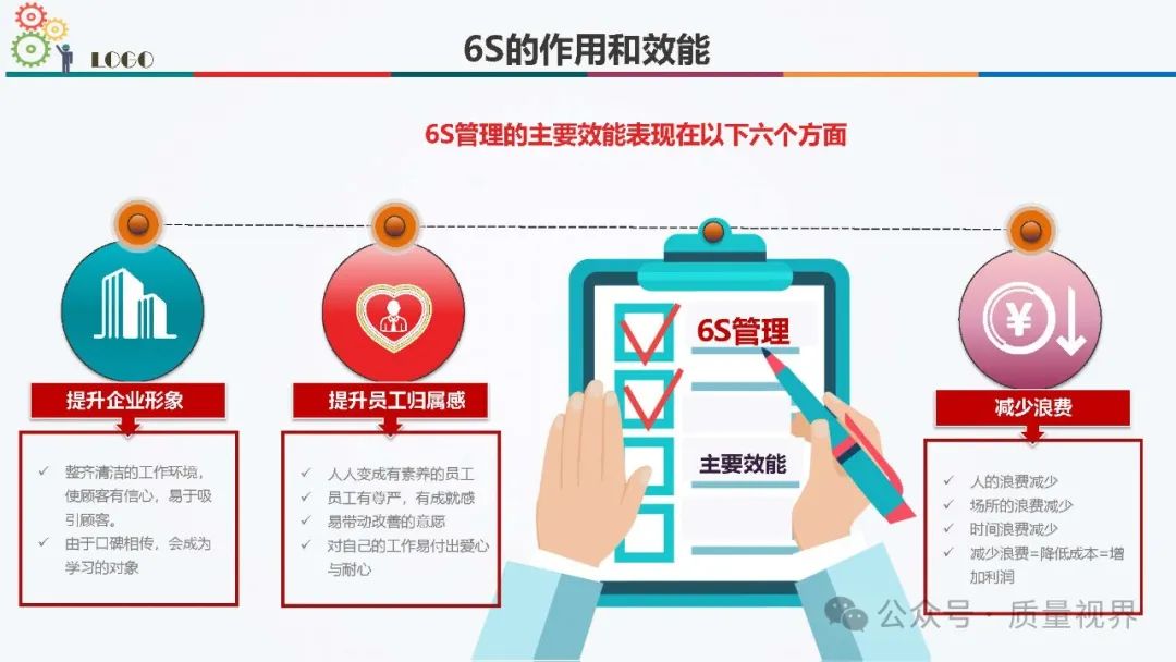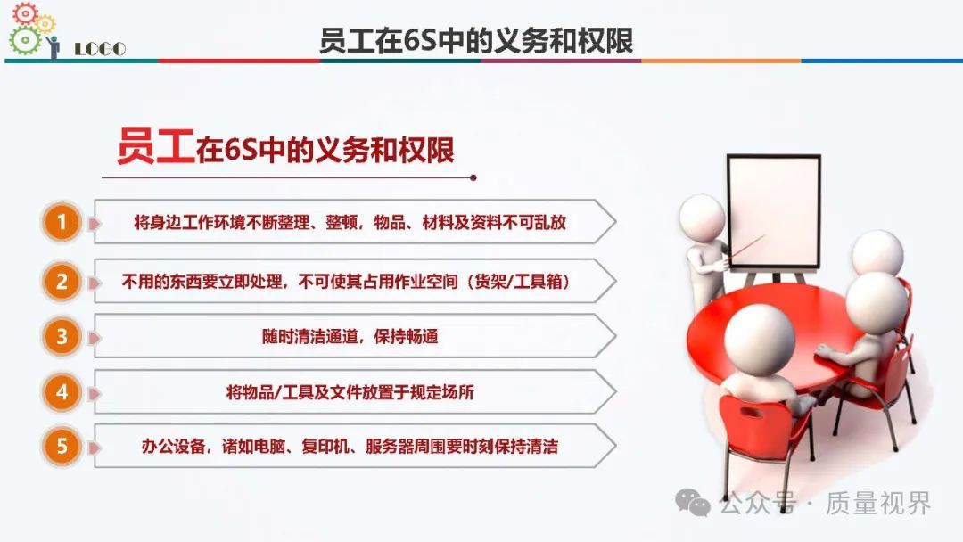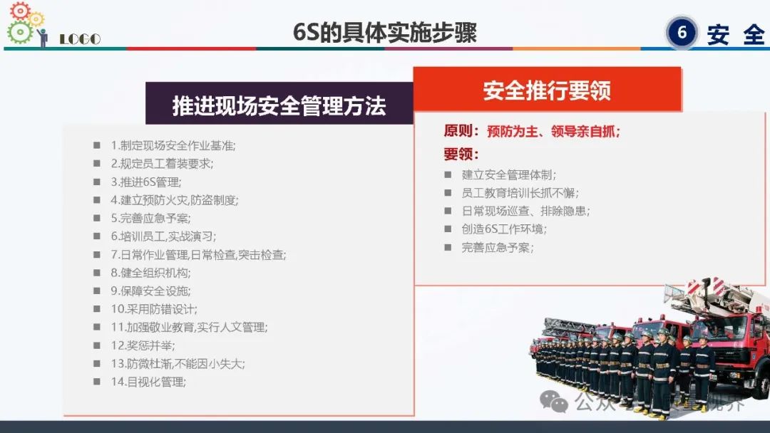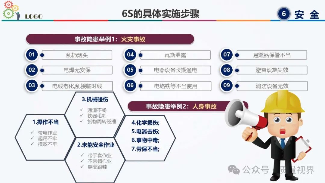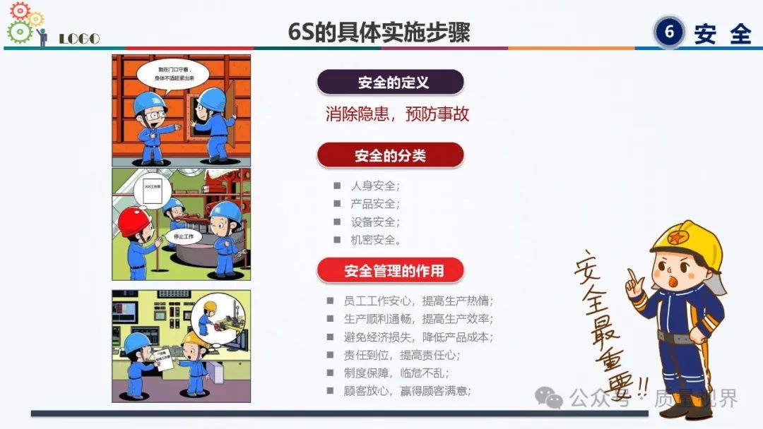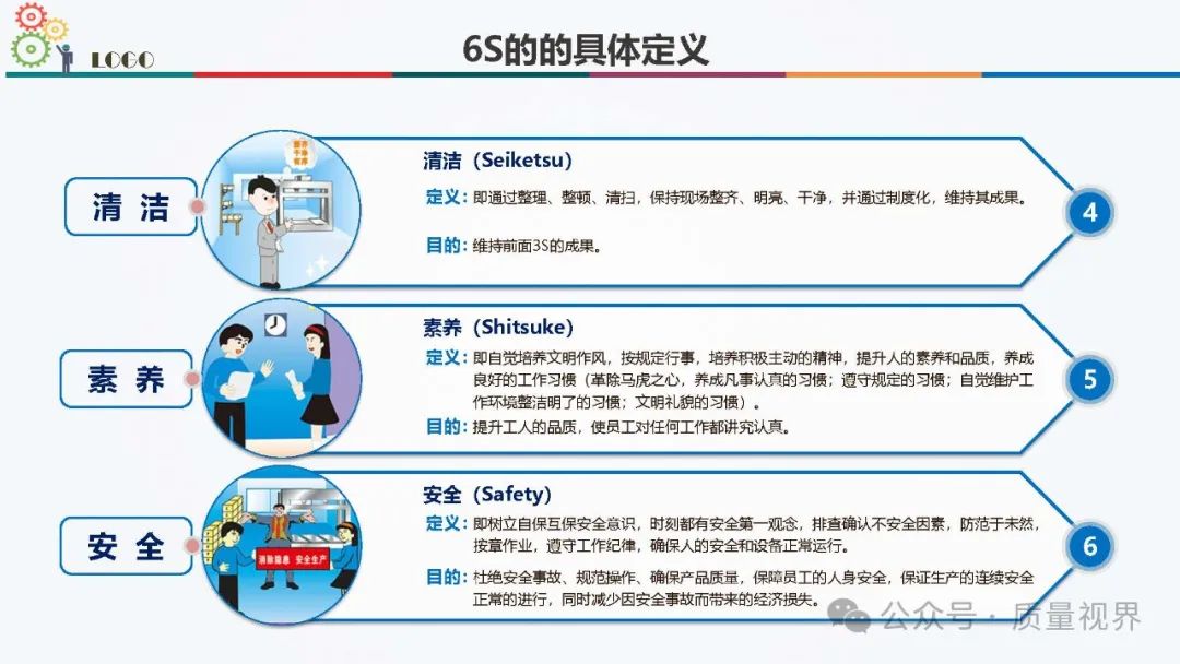 定义:通过培训和教育,使员工养成良好的工作习惯,遵守规章制度,自觉执行 6S 管理规定。培训教育:定期组织 6S 知识培训,让员工了解 6S 的意义、目的和具体要求。宣传引导:通过宣传栏、内部刊物、标语等形式,宣传 6S 管理的重要性和成果,营造良好的 6S 氛围。激励机制:建立激励机制,对在 6S 管理中表现优秀的员工进行表彰和奖励,激发员工的积极性和主动性。安全(Safety)