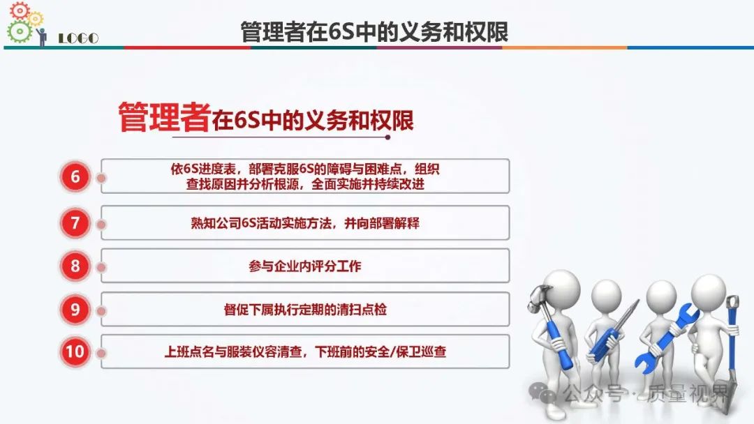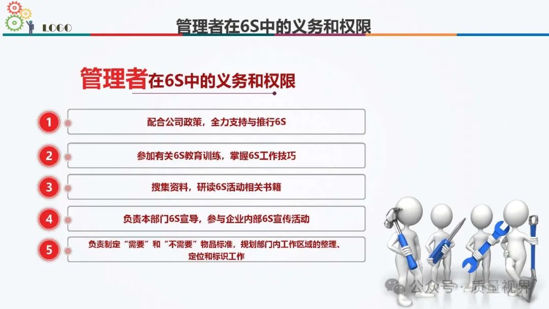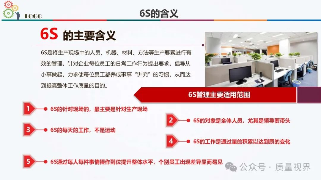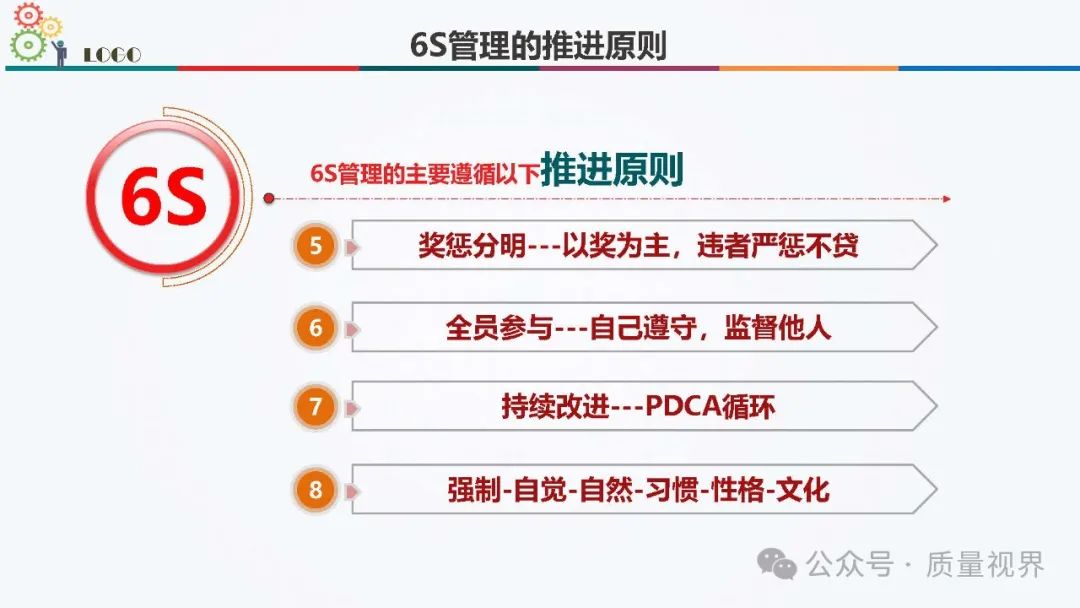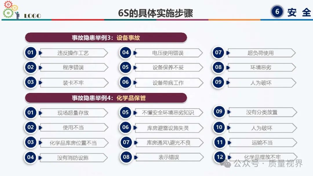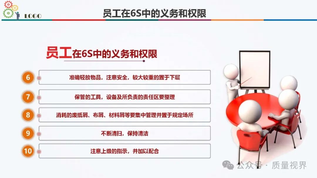 定义:通过培训和教育,使员工养成良好的工作习惯,遵守规章制度,自觉执行 6S 管理规定。培训教育:定期组织 6S 知识培训,让员工了解 6S 的意义、目的和具体要求。宣传引导:通过宣传栏、内部刊物、标语等形式,宣传 6S 管理的重要性和成果,营造良好的 6S 氛围。激励机制:建立激励机制,对在 6S 管理中表现优秀的员工进行表彰和奖励,激发员工的积极性和主动性。安全(Safety)