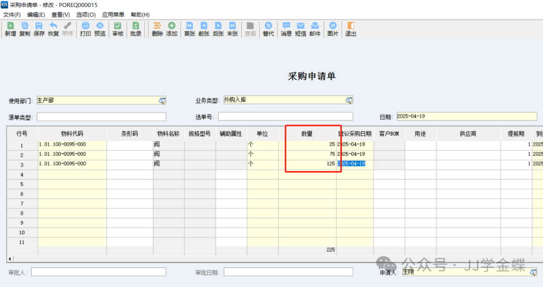 [点晴模切ERP]金蝶KIS旗舰版采购申请单升级:解锁最小订货量与包装量管控新功能,助力企业采购精细化