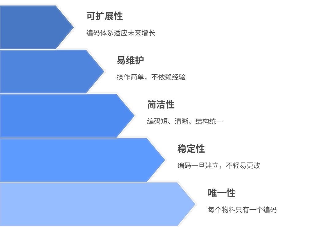 物料编码的原则 我拆成五个最基本的原则: 1.唯一性 一个物料,只能有一个编码,这是最底线。 不能今天叫这个编码,明天又建了个差不多的物料,起了另一个编码。 一物多码、一码多物,是企业里最常见、最致命的数据混乱源头。 2.稳定性 编码一旦建好,不能轻易改。 物料编码是系统之间、单据之间的关联锚点。 你一改编码,所有历史订单、库存记录、财务账目都跟着出问题。 所以要记住:能改名称,别改编码;能改属性,别动主键。 3.简洁性 编码要短、清晰、结构统一。不要贪多。编码只是“编号”,不是介绍物料。 很多企业喜欢把分类、颜色、尺寸、品牌都塞进编码里,结果一个编码十几二十位,还容易出错、系统也处理慢。 正确做法是:编码只做唯一识别,其他信息写在属性字段里。 4.易维护 操作简单,不靠记忆,不靠经验。好的编码系统,应该让普通员工也能快速录入和识别,不需要靠“老员工经验”来查。 最好是系统自动生成、规则统一、权限分明。 谁能建档、谁能审核、谁能改,都在流程里定义清楚。 5.可扩展 后期加品类、加属性,不影响原编码。编码体系要考虑企业发展: 将来品类变多、产品升级、新增字段……不能一变就打乱现有编码。 最好的方式是:主编码简洁固定,属性信息独立维护,编码结构不随分类变化。 ![]() 在ERP系统里,物料编码到底怎么用? 1. 物料编码的生成方式:系统自动生成才靠谱 为什么不能手动编?