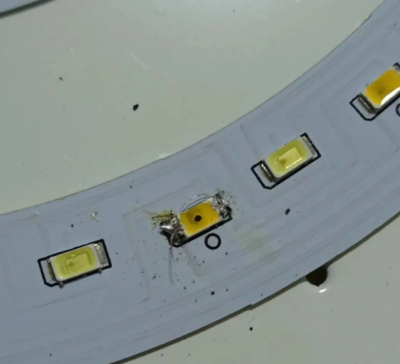 因为最终把这些LED灯珠电路组装在一起以后,是需要封装的。而这些封装,。必须在无尘车间完成 这里就出现一个问题,就是有很多小作坊生产的LED灯,他们自己没有无尘车间,那么就当然做不到无尘密封。 但是,对于LED灯来说,任何一颗小的灰尘,进入到它的内部,都可能导致短路。