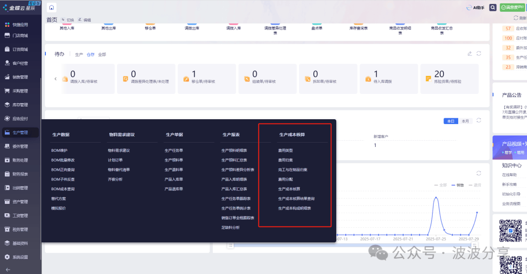 [点晴模切ERP]金蝶云星辰的成本核算流程
