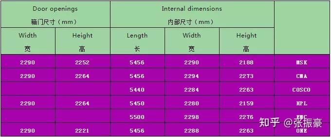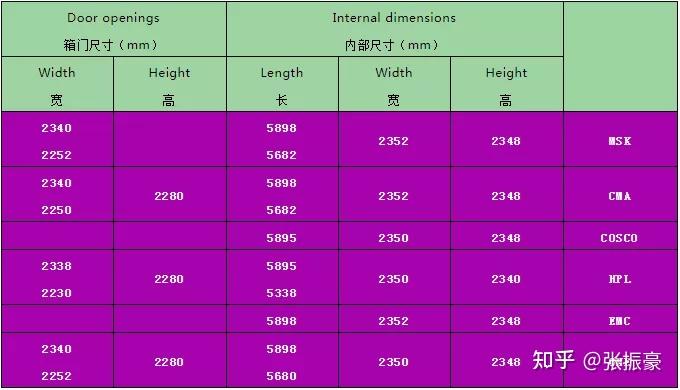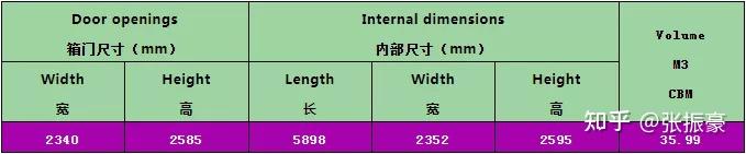 怎么计算装货量,装什么箱型,离不开最基本的一个数据,那就是集装箱的尺寸。 谈到集装箱尺寸,我们熟知小箱长度大概5.9米,自然而然很多人会以为大箱长度就是11.8米。 其实这种意识的长度是不准确的,大箱长度也不是小箱长度乘以2,那么集装箱尺寸到底是多少呢? 下面我们来详细说明。 关于集装箱尺寸,包含三个部分:外部尺寸、内部尺寸、箱门尺寸。 外部尺寸我们这里不做介绍,只要知道内部尺寸和箱门尺寸,我们用着就会得心应手! 干货箱(Dry Cargo) 1、20英尺普箱,表示为:20GP/20FCL/20SD/20DV/20DC/20DRY8.6