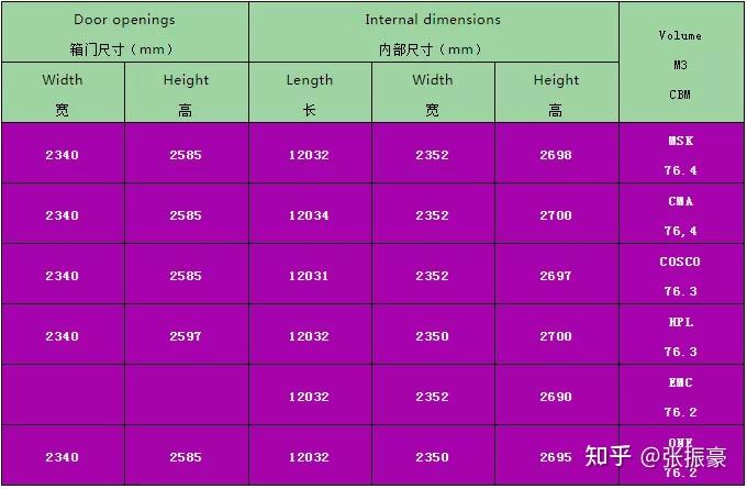 4、40英尺高箱,表示为:40HQ/40HC/40DRY9.6