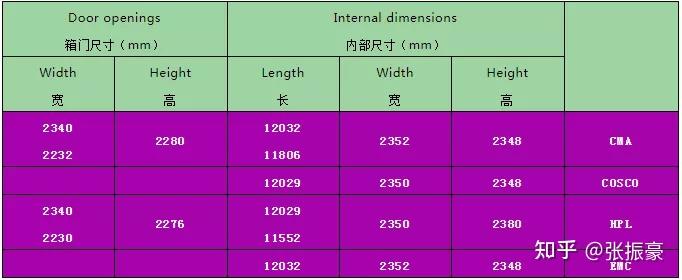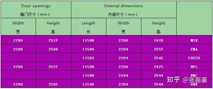 3、40英尺普箱,表示为:40GP/40FCL/40SD/40DV/40DC/40DRY8.6