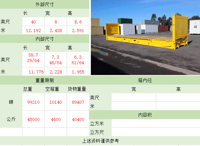 照片名称:40'FR(Flat Rack角柱式折迭平板)