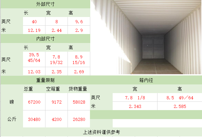 照片名称:40'GP(General Purpose Containe) 备注:正常装货56CBM