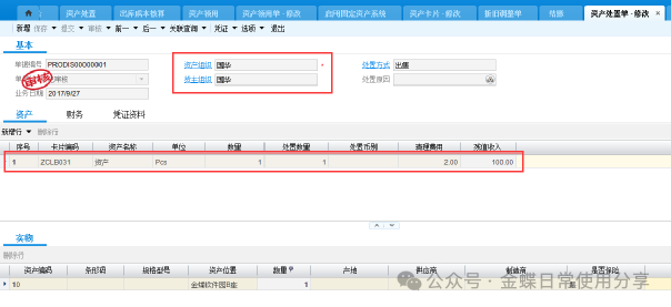 如果资产调出后需要处理,通过资产调出单下推资产处置单。