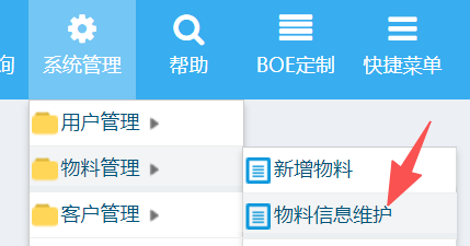 操作步骤:系统管理-物料管理-物料信息维护