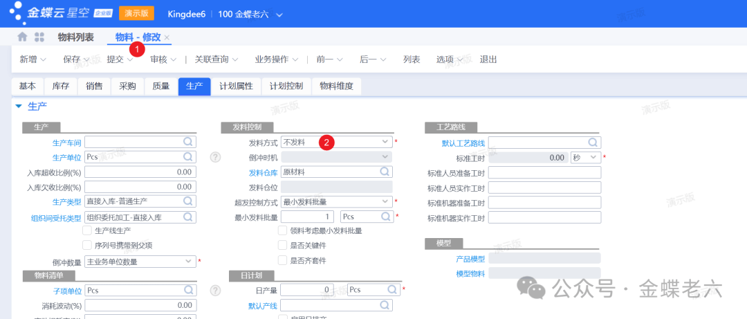 发料控制:针对这一块的辅料不发料的物料在物料层次直接设置不发料控制。
