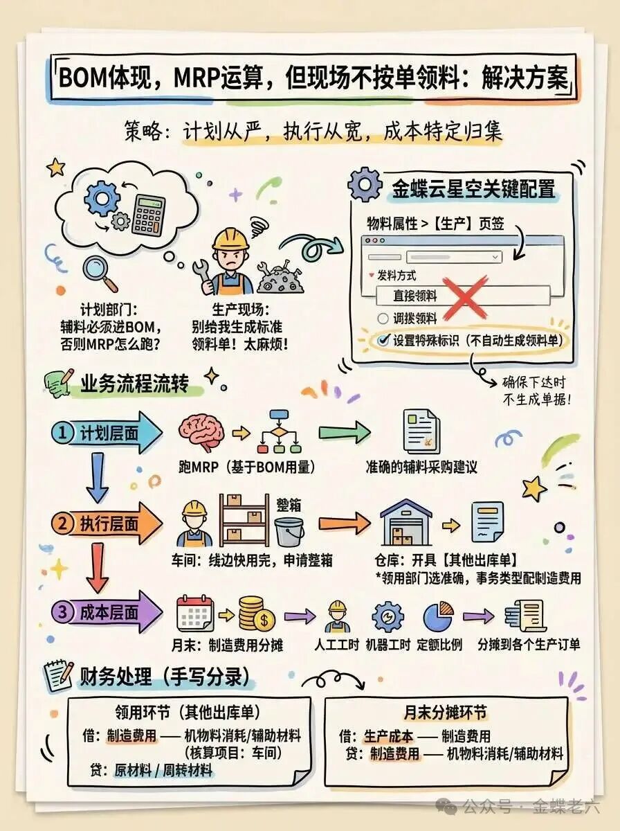 作为金蝶实施顾问,我们建议企业根据自身管理成熟度进行选择。如果辅料价值真的很低,用方案一或者方案二中的B没问题;如果辅料价值较高或追求精细化成本,强烈建议上“线边仓倒冲”!使用方案二中的A。