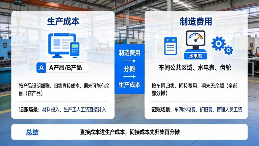二、两个核心账户:生产成本 vs 制造费用