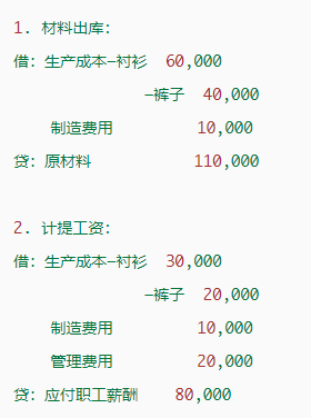 4、生产工人工资:衬衫3万、裤子2万