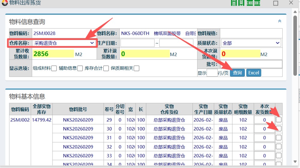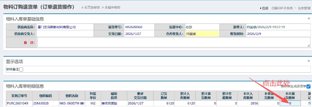 点晴模切ERP来料品检不良品操作以及退货操作流程