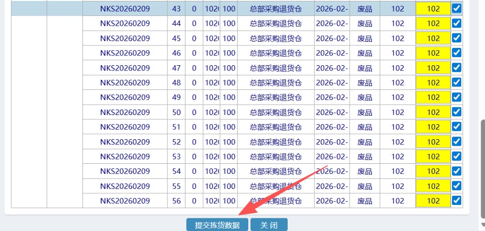 品质做品检单,直接将对应的质量状态改成废品,将仓位选择到退货仓/不良仓