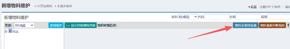 点晴模切ERP新增物料必填项设置