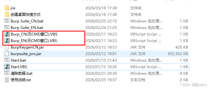 这就已经结束了 后续我们可以直接使用两个VBS一键启动burp了 cn是中文版 en是英文版