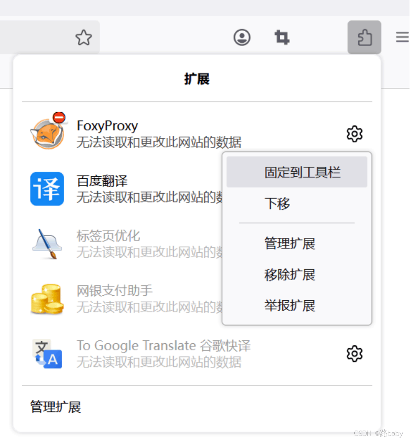 然后我们按照步骤添加即可 然后我们点击那个拼图的按键 将插件固定在工具栏上