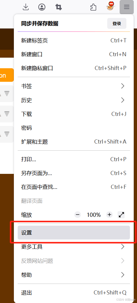 然后我们刚刚说需要让他转发到8080端口 所以我们这里需要进行一个设置 我们打开小狐狸 点击选项