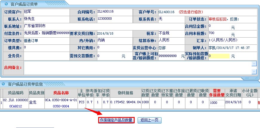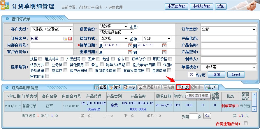 情况1,可直接作废: 点击“作废”进入如下页面; 点击“作废指定产品及数量”即可。 遇到该情况,则需要先作废对应的送货单,再进行销售单作废操作