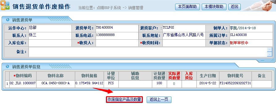 点晴模切ERP销售退货单管理流程—反审.作废销售退货单