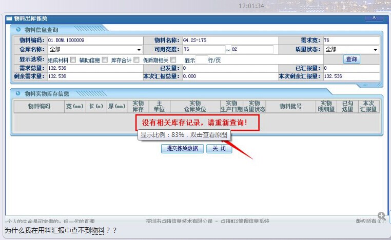 [点晴模切ERP]生产用料汇报中查询不到物料原因